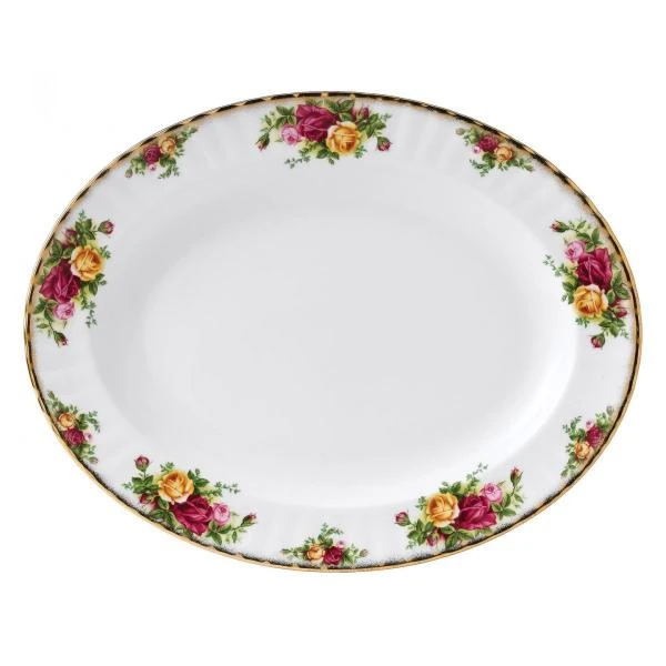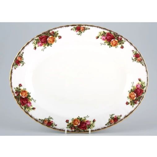 Royal Albert Old Country Roses Large Oval Dish – The best-selling dinnerware pattern in the world, the Old Country Roses pattern is practically synonymous with the name Royal Albert and a long-standing testament to timeless style and elegant craftsmanship. This Large Oval Dish is decorated with the Old Country Roses signature motif of burgundy, pink and yellow roses, accented with lustrous gold banding.