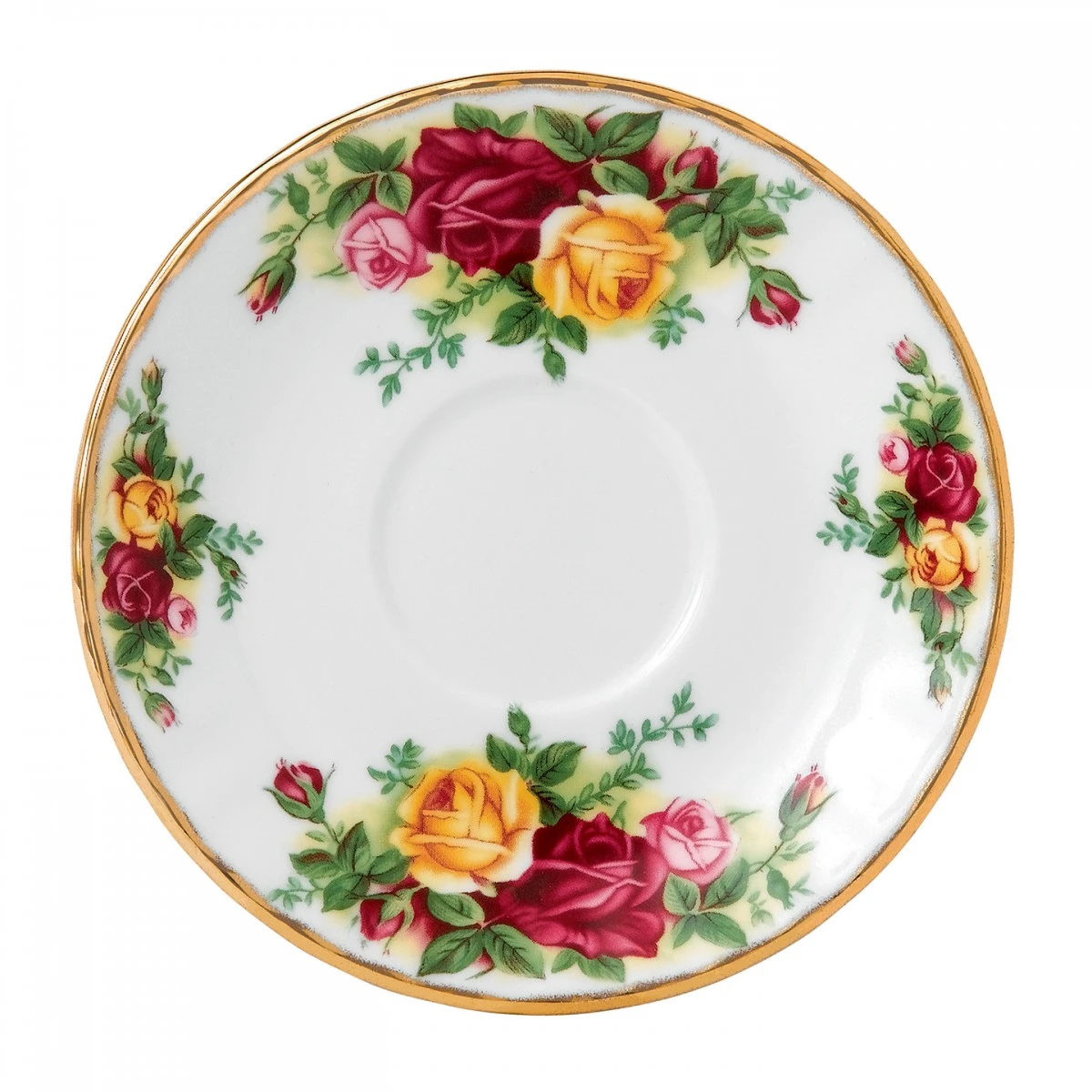 Royal Albert Old Country Roses Coffee Saucer – The best-selling dinnerware pattern in the world, the Old Country Roses pattern is practically synonymous with the name Royal Albert and a long-standing testament to timeless style and elegant craftsmanship. This Coffee Saucer is decorated with the Old Country Roses signature motif of burgundy, pink and yellow roses, accented with lustrous gold banding.