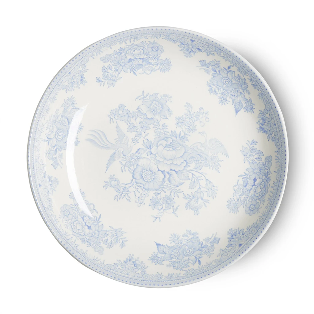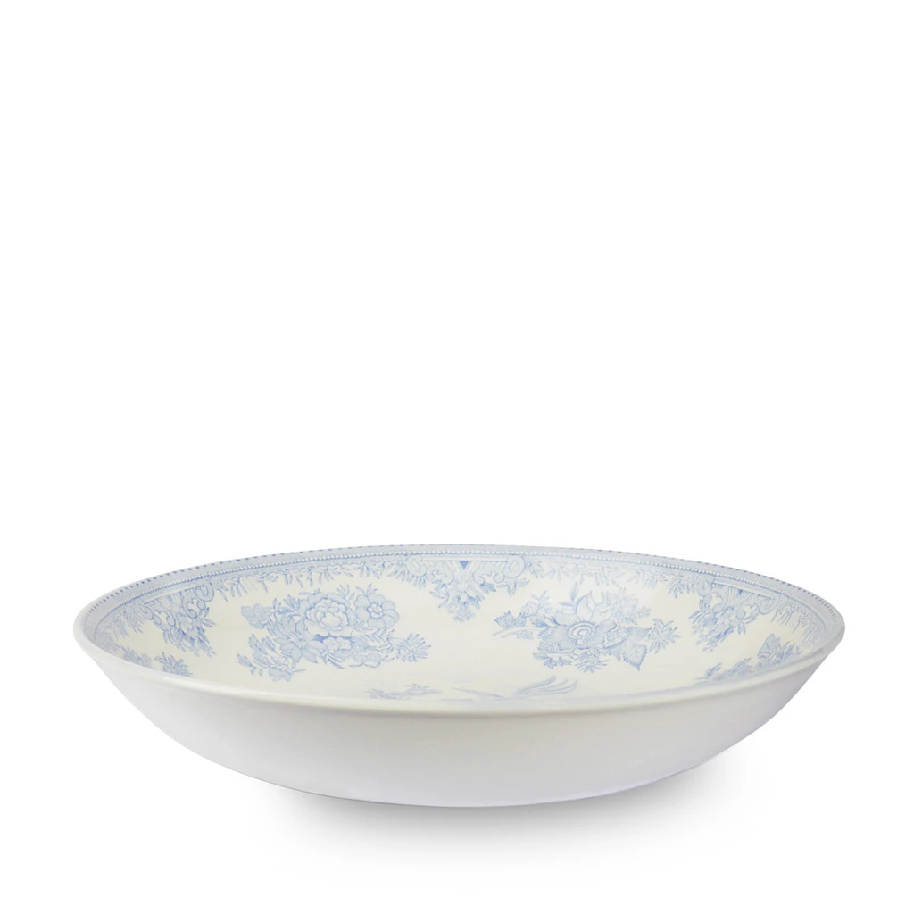 Exquisitely hand-decorated in a subtle yet elegant pale blue, this shallow Blue Asiatic Pheasants Pasta Bowl serves every need.