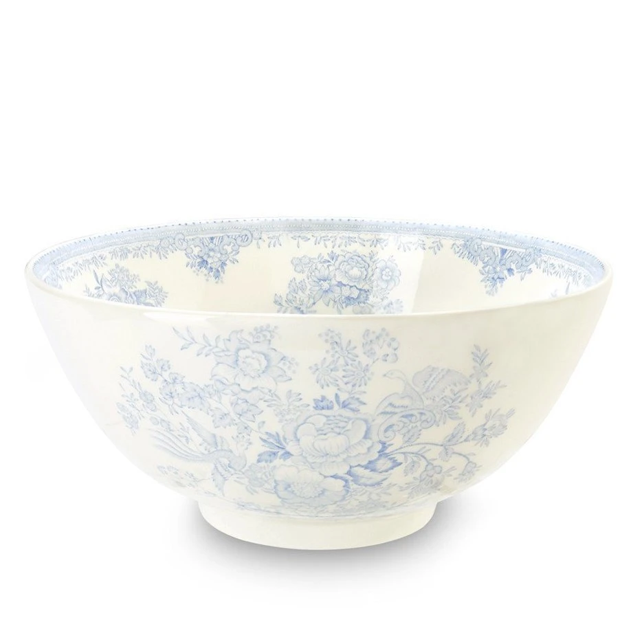 Blending a timeless pattern with contemporary design, this large Blue Asiatic Pheasants Footed Bowl is a beautiful addition to the kitchen.
