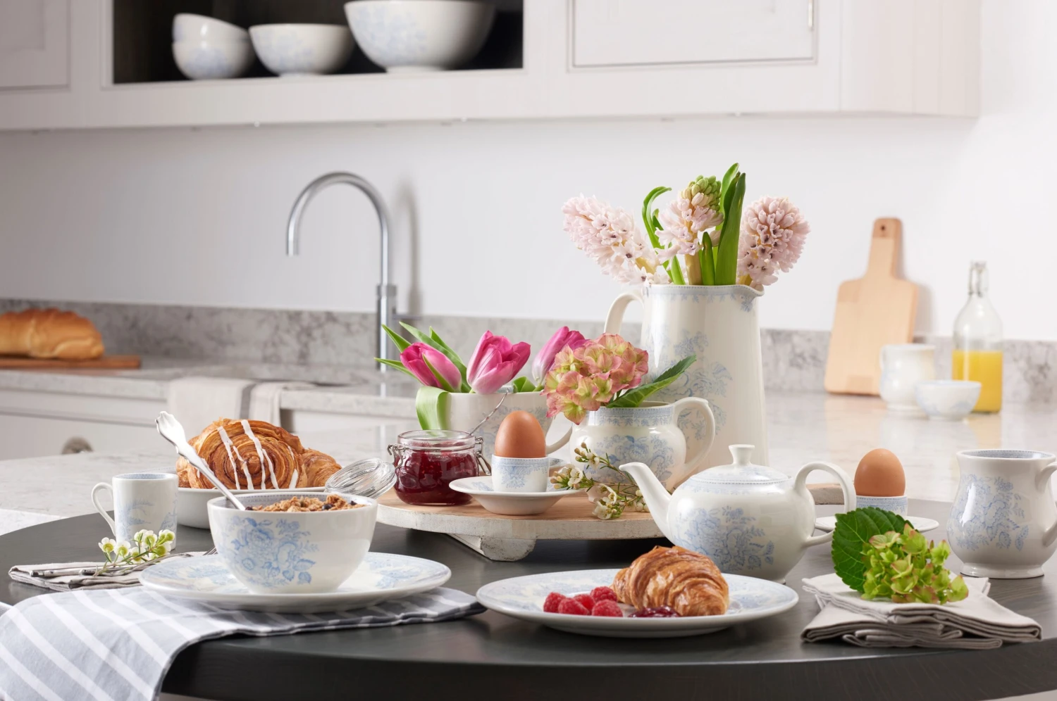 A classic design hand-decorated in Burleigh’s timeless pattern, this large Blue Asiatic Pheasants Tankard Jug is a charming addition to the table.