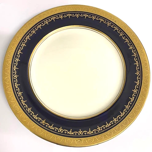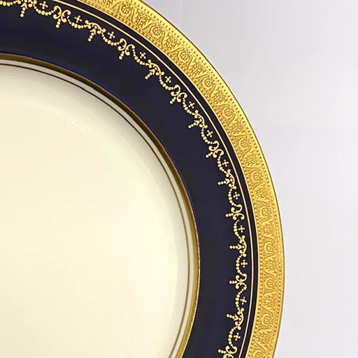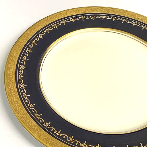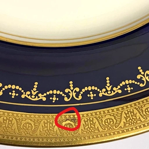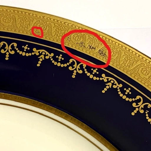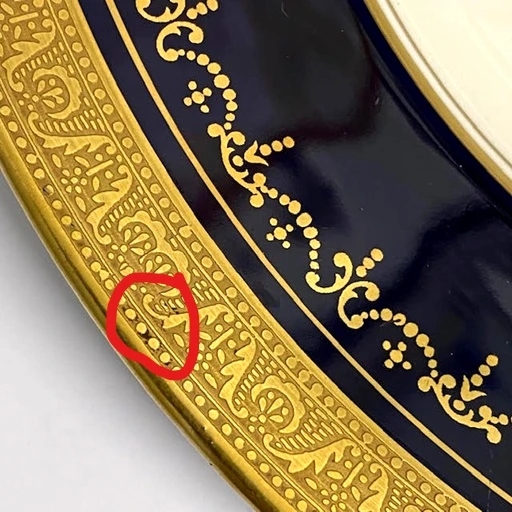 *Please note: there are some slightly dark blemishes on the acid etched gold edging of this plate – circled in red.