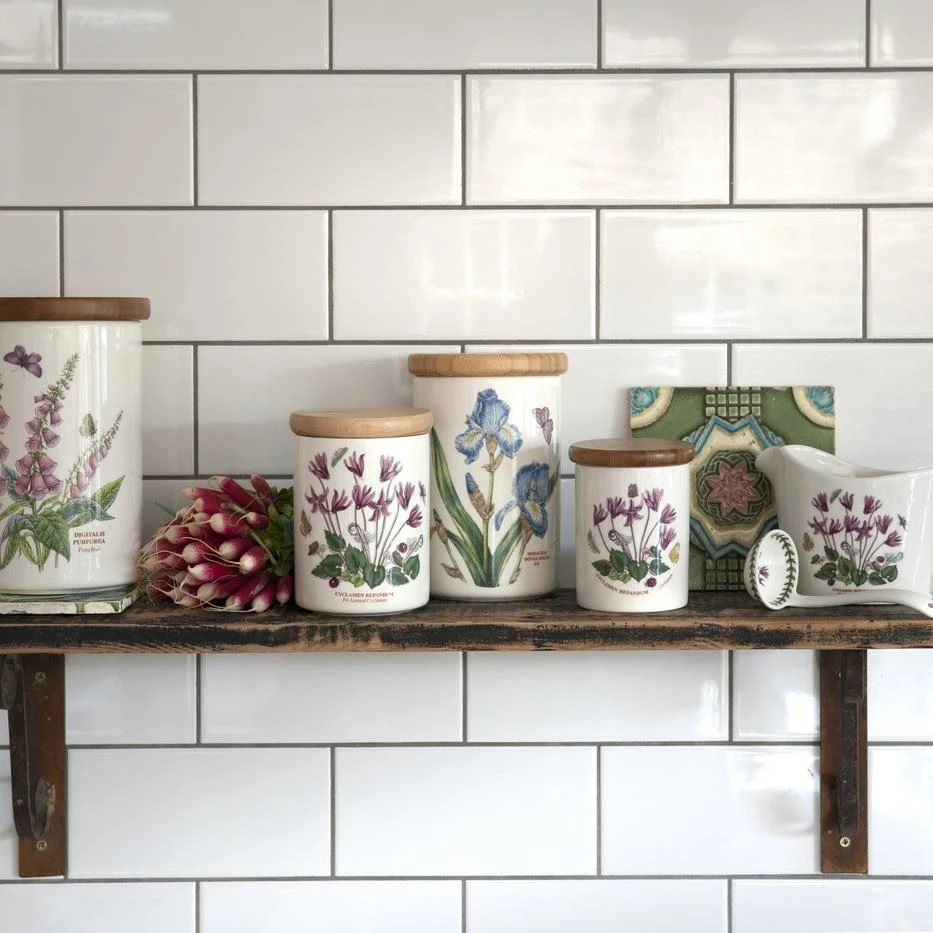 A true British classic, Botanic Garden was designed by the celebrated designer Susan Williams-Ellis. Botanic Garden’s delightful mixture of pretty floral motifs and signature leaf border set a new trend for casual dining in the 1970s and today Botanic Garden looks as pretty as a daisy. These delightful Botanic Garden 7 inch Airtight Jars feature a variety of beautiful motifs and will look great in your kitchen. With a rubber seal, these Airtight Jars will keep your tea, coffee, sugar and biscuits fresh.
