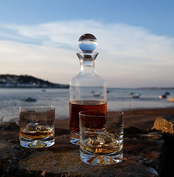 A striking crystal decanter that has the luxury weight and feel of hand made crystal. This decanter makes a great way to serve any good spirit from.