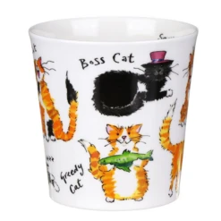 These cats are purrfectly happy with their life choices. Naturally full of character, these felines are showing their owners who rules the house in this humerous cat design with its quirky illustrations.