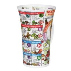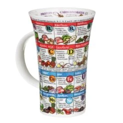 Healthy eating, we’ve all tried to do it. Sometimes with success and sometimes giving in to your favourite cake, which is just too tempting. Well if you’re looking for some more motivation, look no further. This informative mug will give you plenty of information on what vitamins and minerals you need to consume for that balanced diet.