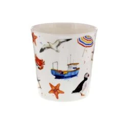 This pretty seaside mug is perfect for any coastal home. The design is watercolour, using fresh colours and showcases much loved coastal images, from puffins to buckets and spades.