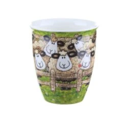 Down on the farm we have found these cheerful sheep. Created by Jane Brookshaw with a crackle and mottled effect, this design features a flock of curly horned sheep which have been herded into their pen with their collie dog friends.