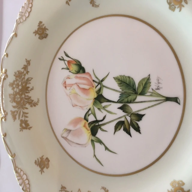 Bone China Made and partly Hand Painted in England. Pattern Signed by Artist.