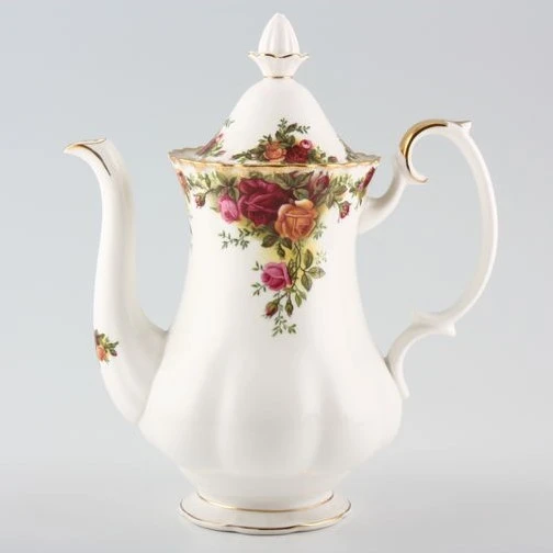 Royal Albert Old Country Roses Small Coffee Pot – The best-selling dinnerware pattern in the world, the Old Country Roses pattern is practically synonymous with the name Royal Albert and a long-standing testament to timeless style and elegant craftsmanship. This Small Coffee Pot is decorated with the Old Country Roses signature motif of burgundy, pink and yellow roses, accented with lustrous gold banding.