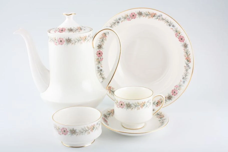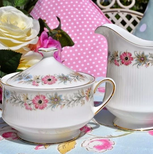 Paragon/Royal Albert Belinda is one of the most widely recognised discontinued designs from the Paragon brand. Belinda features a floral sprig border with yellow and pink flowers and gold trim. The shapes are typically Paragon with straight vertical sides and ribbed edging. It was later manufactured under the Royal Albert name, following the takeover of Paragon by Thomas C Wild & Sons Ltd. All pieces remained the same in shape and design. Only the backstamp changed.