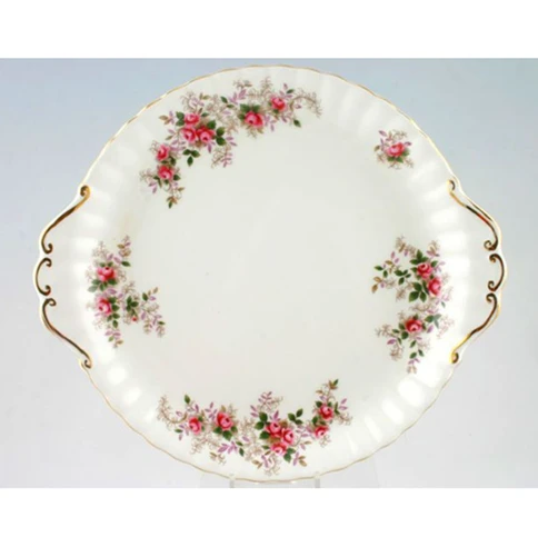 Royal Albert Lavender Rose is a delicate rose design featuring small pink roses with lavender and green foliage, set against a gently fluted white border with gilded edging. Royal Albert introduced the Lavender Rose pattern of china tableware in 1961. It has now been discontinued for many years.