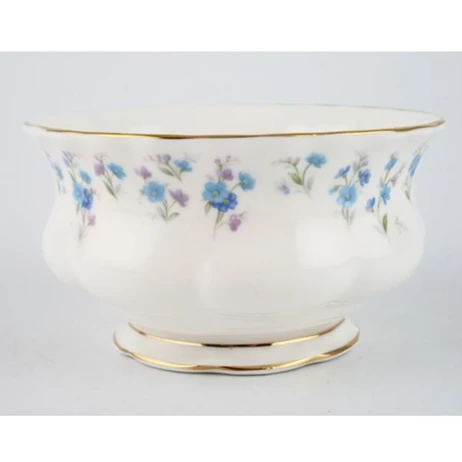 “Memory Lane” pattern was first made in 1965 and was produced until 1973. The pattern is composed of small sprigs of light and medium blue flowers (forget-me-nots) with light green stems and leaves. The tips of the flowers have a hint of pink. Beautifully trimmed in gold.