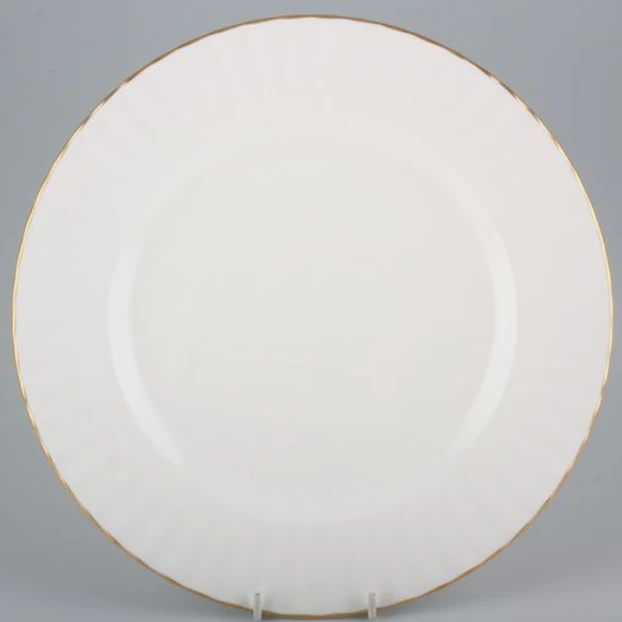 This is Royal Albert tableware for traditional finesse – Val d’Or is translucent white bone china in the baroque Montrose shape with fluted edges, and that extra touch of gold trim on the edges and handles. In short, gilt edged luxury for the tabletop. Introduced in 1962. This pattern has been discontinued.