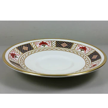 This classic border pattern with distinctive Imari palette frames an attractive expanse of pure white fine bone china. This item is now discontinued.