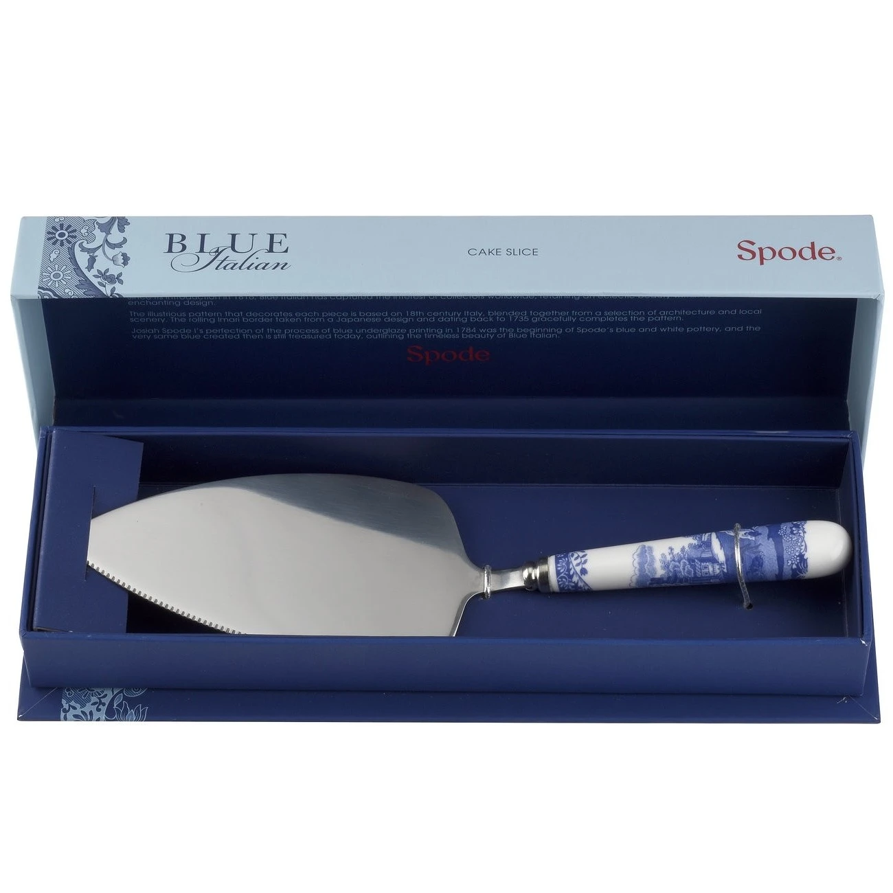 This beautiful Blue Italian cake slice from Spode is a wonderful addition to your afternoon tea setting. The cake slice features the iconic Blue Italian design on the porcelain handle and is presented in an elegant box, making it an ideal gift.Â