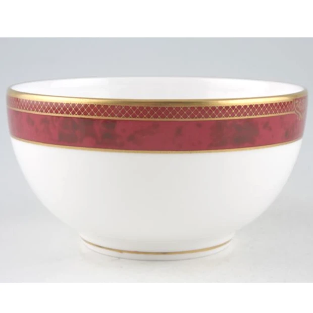 A lustrous and stately pattern for the table, Bordeaux features a sumptuous rich marbled crimson enriched band with a striking 22 carat fine gold lattice overlay. Setting a lively table with an extra touch of refinement, Bordeaux is best cared for when hand-washed. The gold trim on this pattern means it is not safe for use in the microwave.