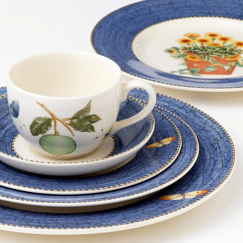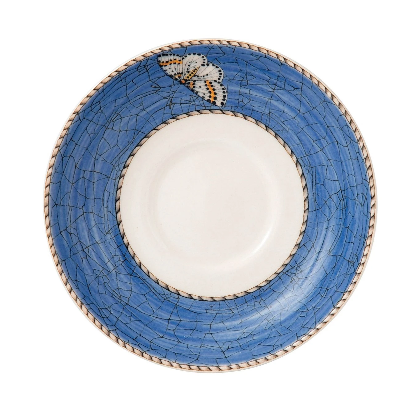 Wedgwood Sarah’s Garden Blue Tea Saucer – The English Country Garden is an image ingrained in the British identity, and serves as inspiration for Sarah’s Garden. This whimsical dinnerware pattern is characterized by motifs and borders in delicate pastel shades, reminiscent of floral herbs like lavender and thyme. This Blue Tea Saucer is rendered in simple, elegant earthenware and features a subtle pastel borders and lovingly hand-rendered botanical motifs.