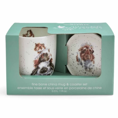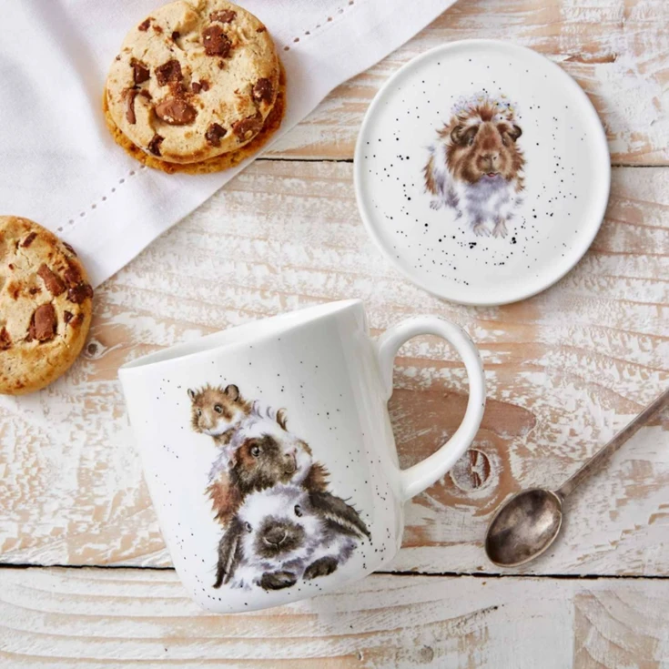 If you love Guinea pigs, you’re going to adore our new Wrendale Designs Piggy In The Middle Mug and Coaster Set. The fine bone china mug, which is microwave and dishwasher safe, features three fluffy Guinea pigs all cosied up together, while the complementary ceramic coaster is wonderfully decorated with a fourth, equally loveable friend.