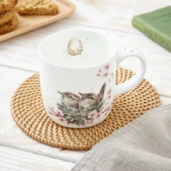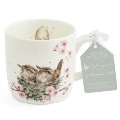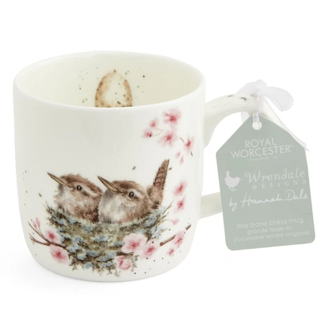 Build your Royal Worcester Wrendale Designs bird collection with this beautiful, fine china mug, decorated with a heartâwarming illustration of one of Britainâs bestâloved (and smallest) birds. Featuring two gorgeous, tiny brown wrens, cuddled up together in a nest atop a pastel pink cherry blossom tree, this sweet mug has been designed by awardâwinning British artist, Hannah Dale, whose animal drawings are incredibly lifelike and are adored worldwide. Microwave and dishwasherâsafe, itâs ideal for everyday use and would make a lovely birthday present for the bird lover in your life.