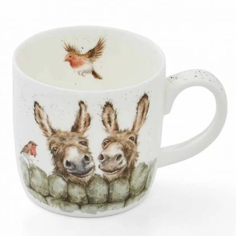 Featuring two cheeky donkeys peering over a stone wall accompanied by some robins, our Wrendale Designs Hee-Haw Donkey Mug will add a whole lot of personality to your kitchen. Designed by award-winning artist, Hannah Dale, this beautiful fine bone china mug is suitable for dishwasher and microwave use, making it ideal for everyday use.